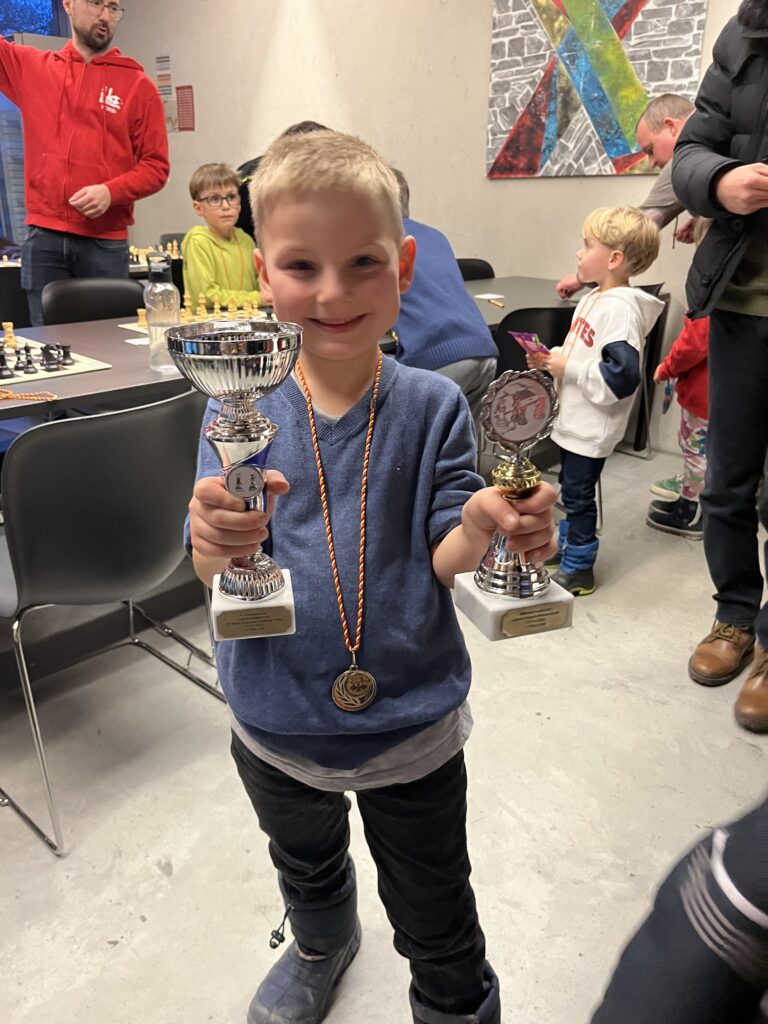 Bei der U – 14 wurde Ben Grote Dritter mit 5.5 Punkten (30 Teilnehmer) und