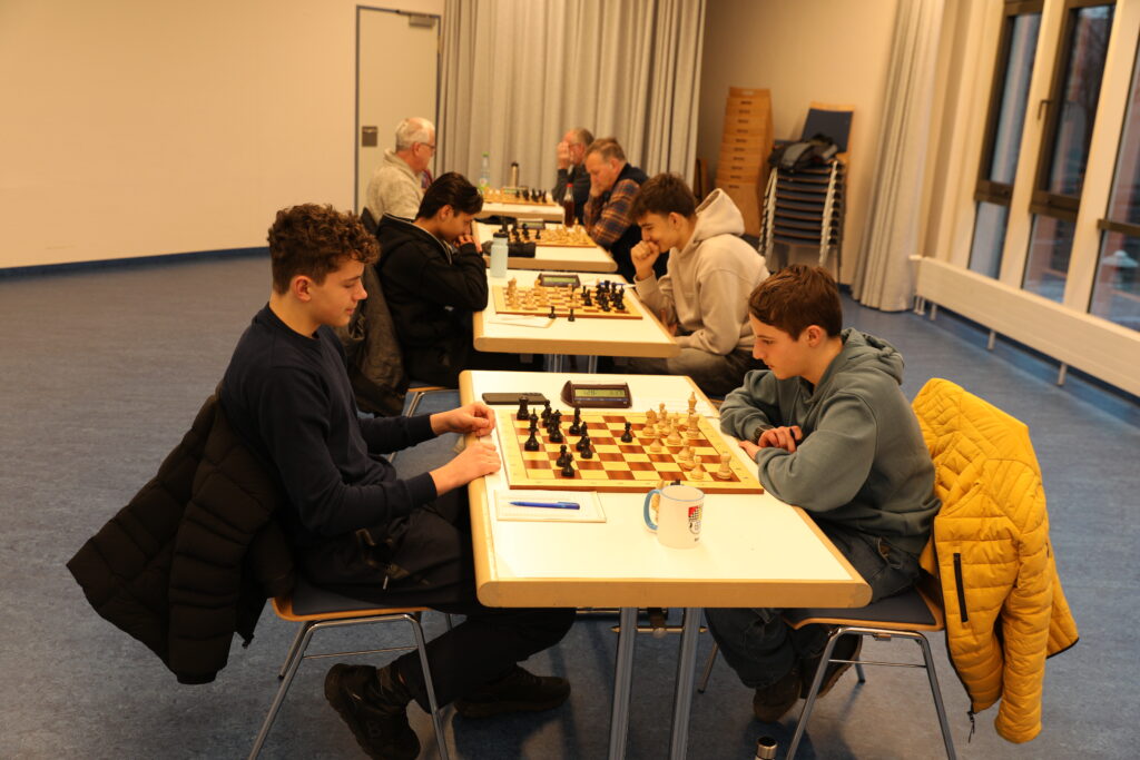 Und auch im Jugendduell an Brett 3 zwischen Elias und Nikos einigte man sich nach einer umkämpften Partie auf ein Remis.